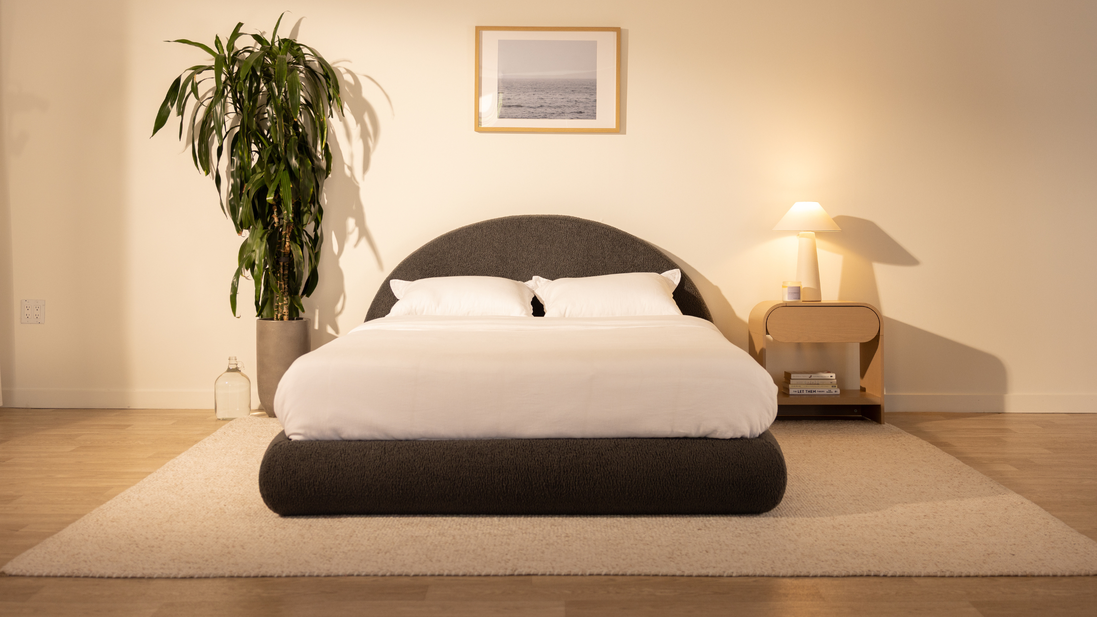 Bold, curvaceous design meets plush cloud bed comfort. Soften your bedroom with our round, all-cushioned, upholstered bed frame and headboard. Crafted with premium materials and resilient fabrics. Designed to put you—and your toes and shins—at ease.
