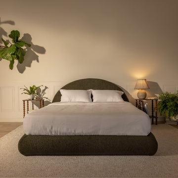 Bold, curvaceous design meets plush cloud bed comfort. Soften your bedroom with our round, all-cushioned, upholstered bed frame and headboard. Crafted with premium materials and resilient fabrics. Designed to put you—and your toes and shins—at ease.