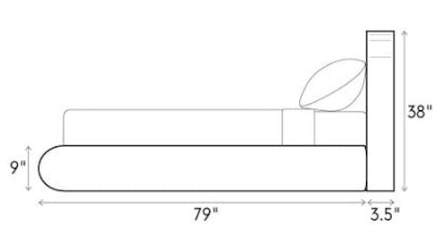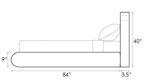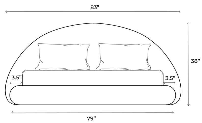 - Headboard: 83" L x 3.5" W x 38" H