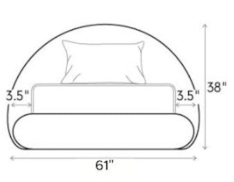- Headboard: 61" L x 3.5" W x 38" H