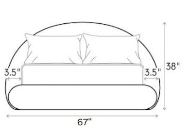 - Headboard: 67" L x 3.5" W x 38" H